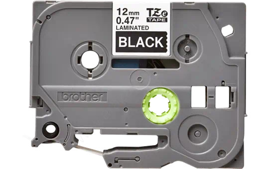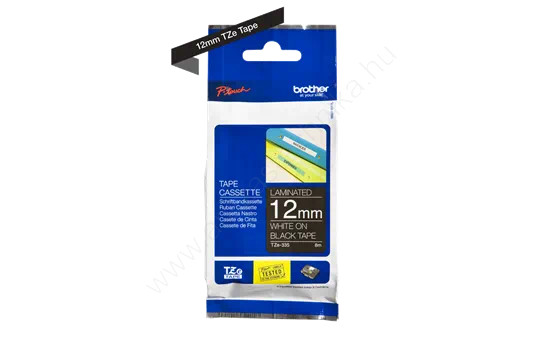12 mm széles, 8 m hosszú, fekete alapon fehér színű tartós laminált feliratokhoz nyomtatószalag